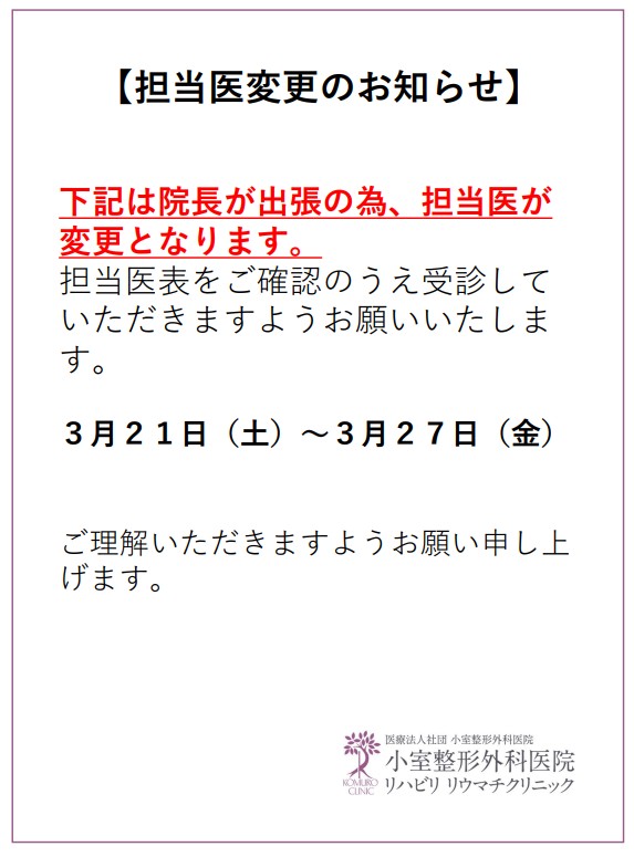 担当医変更のお知らせ